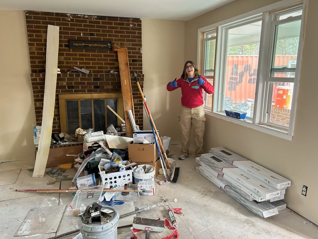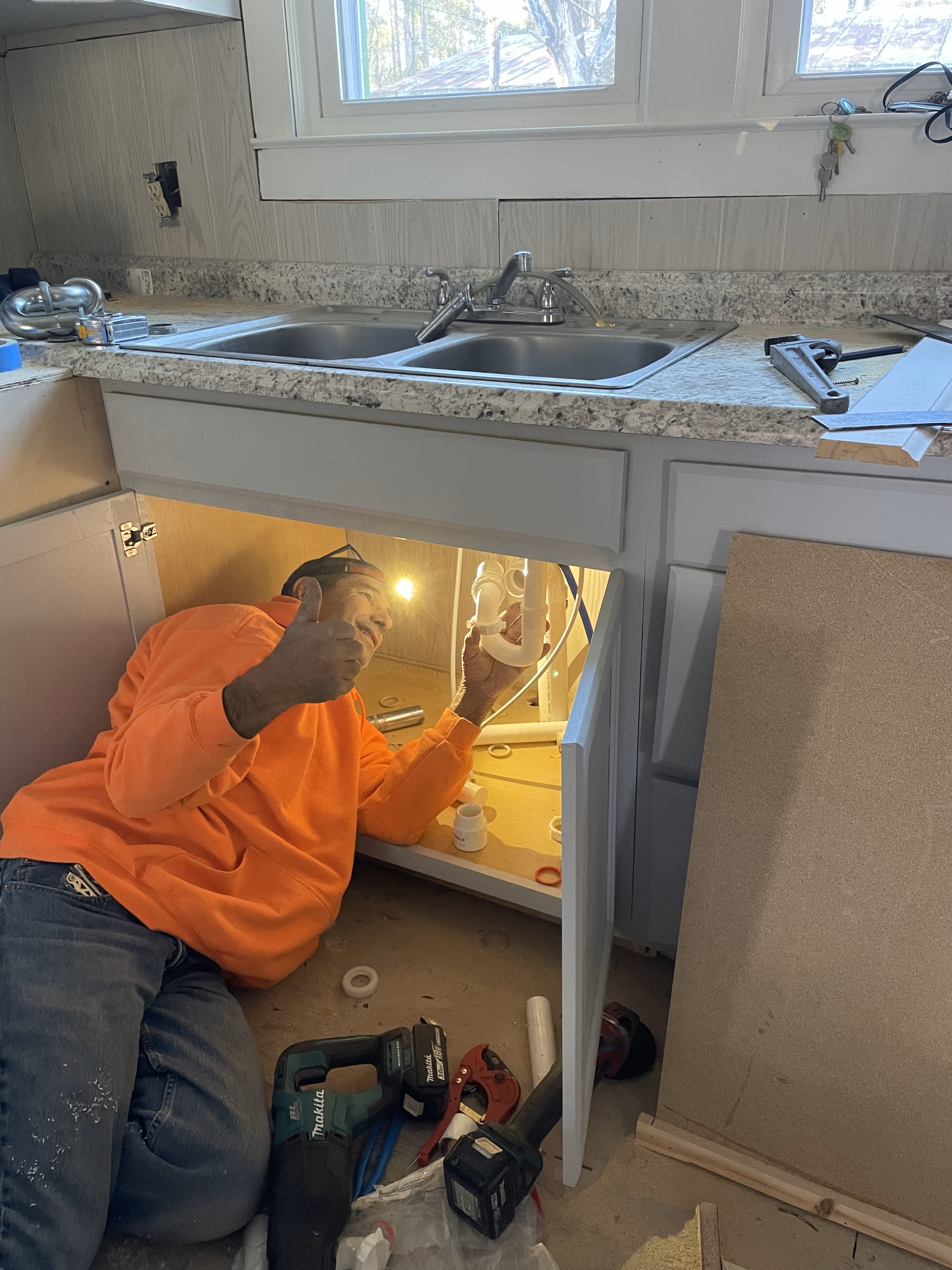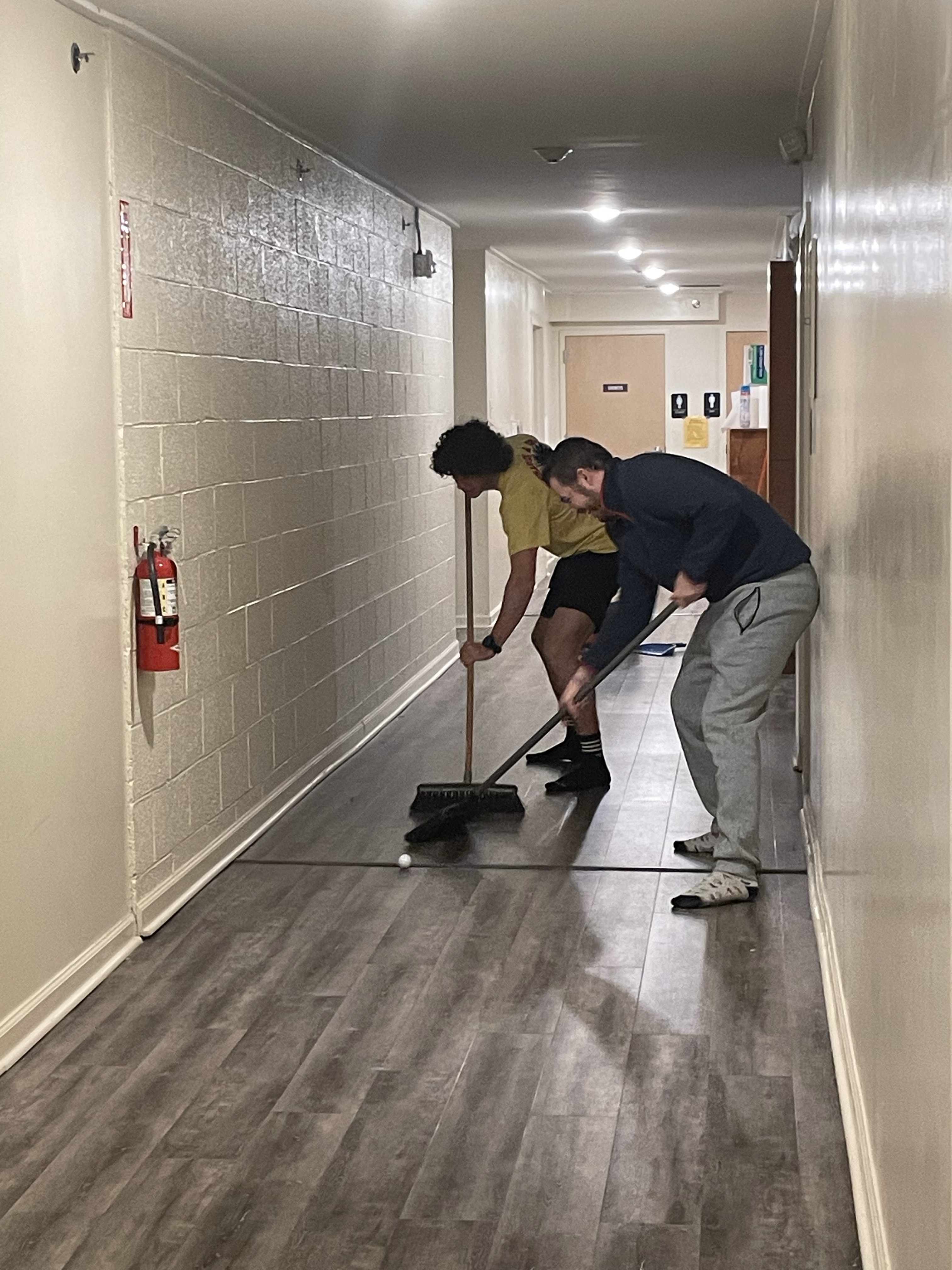 Team 1 mainly laid flooring, while Bobby Srour installed the plumbing in a bathroom.