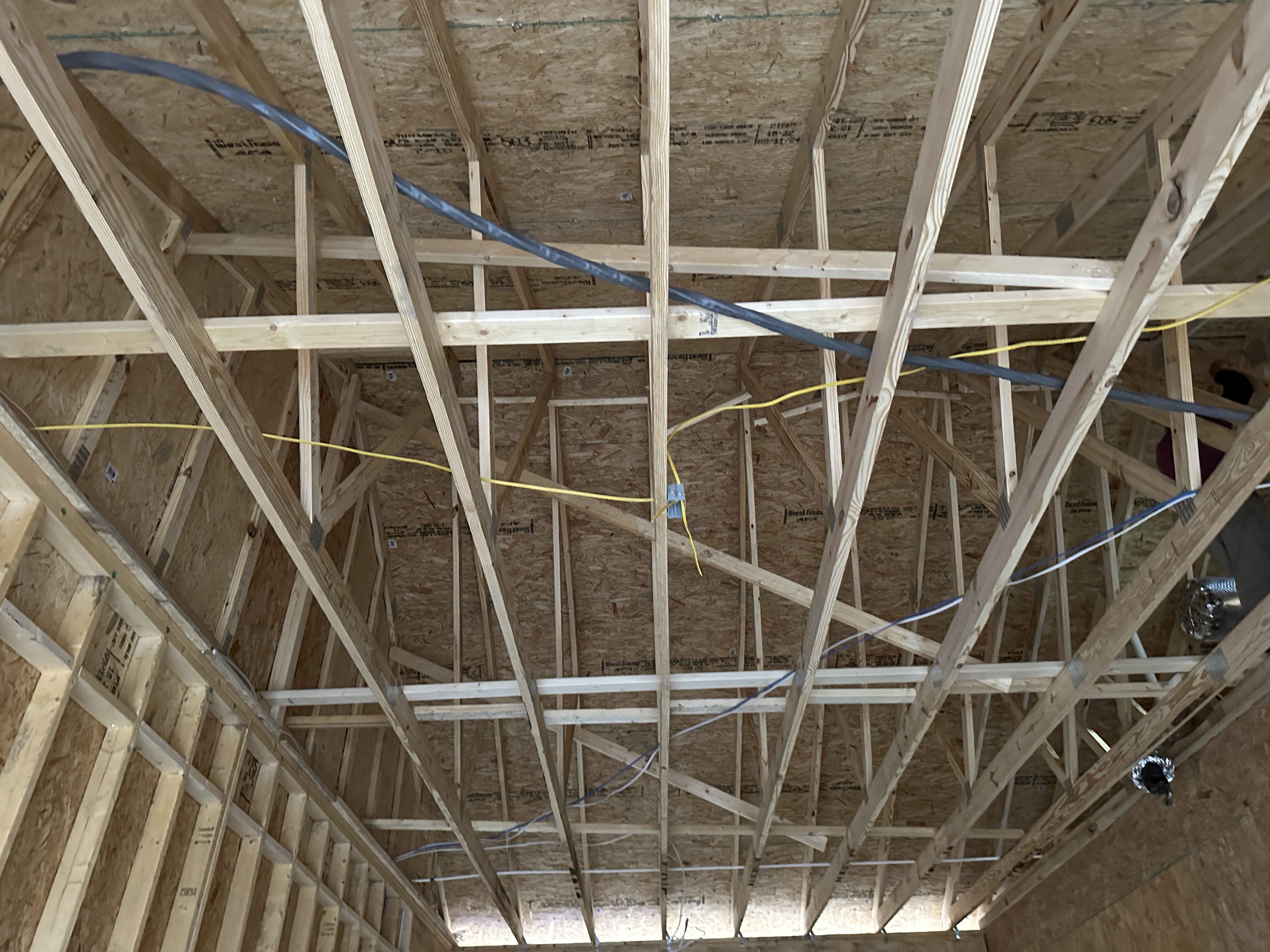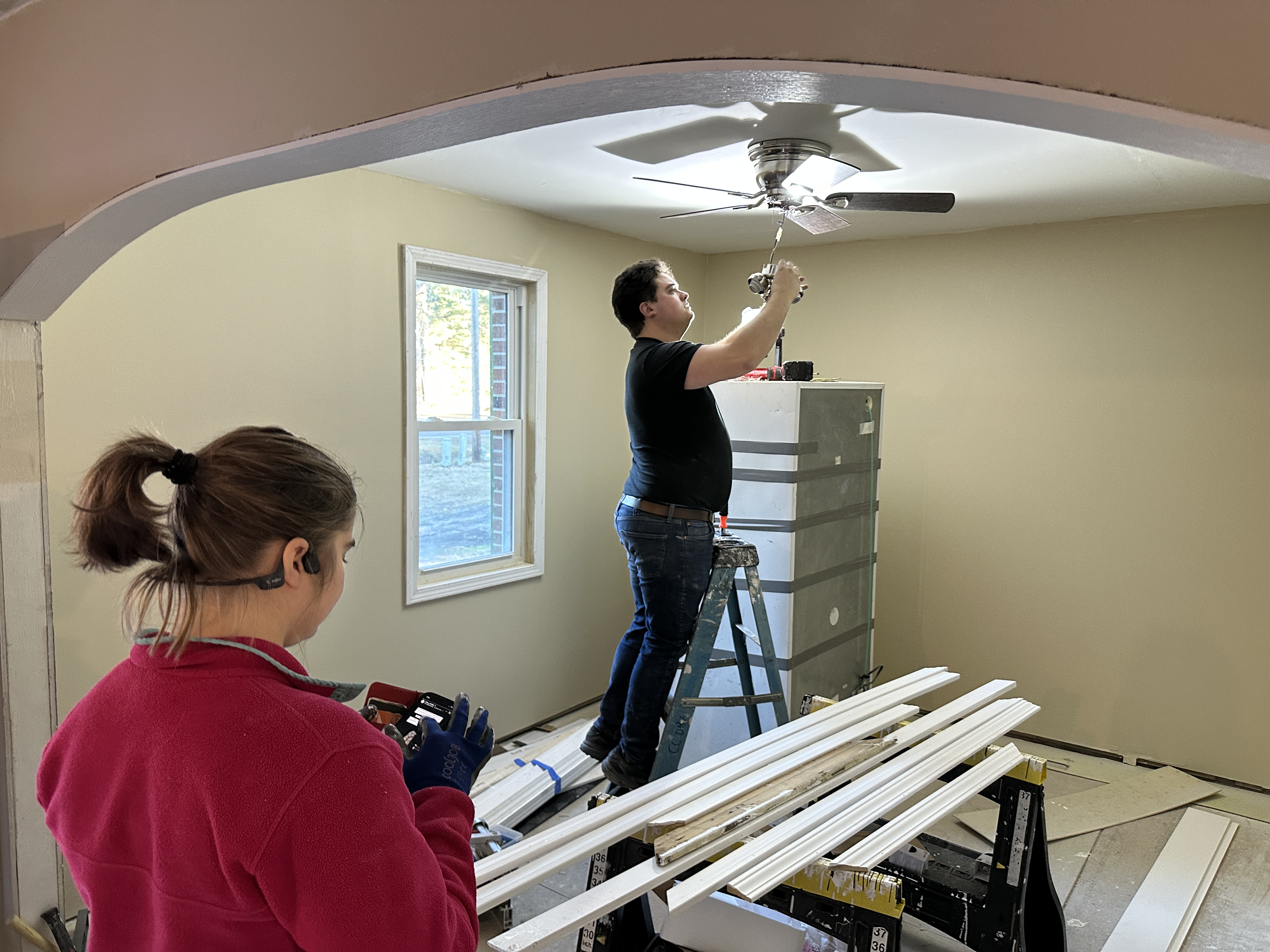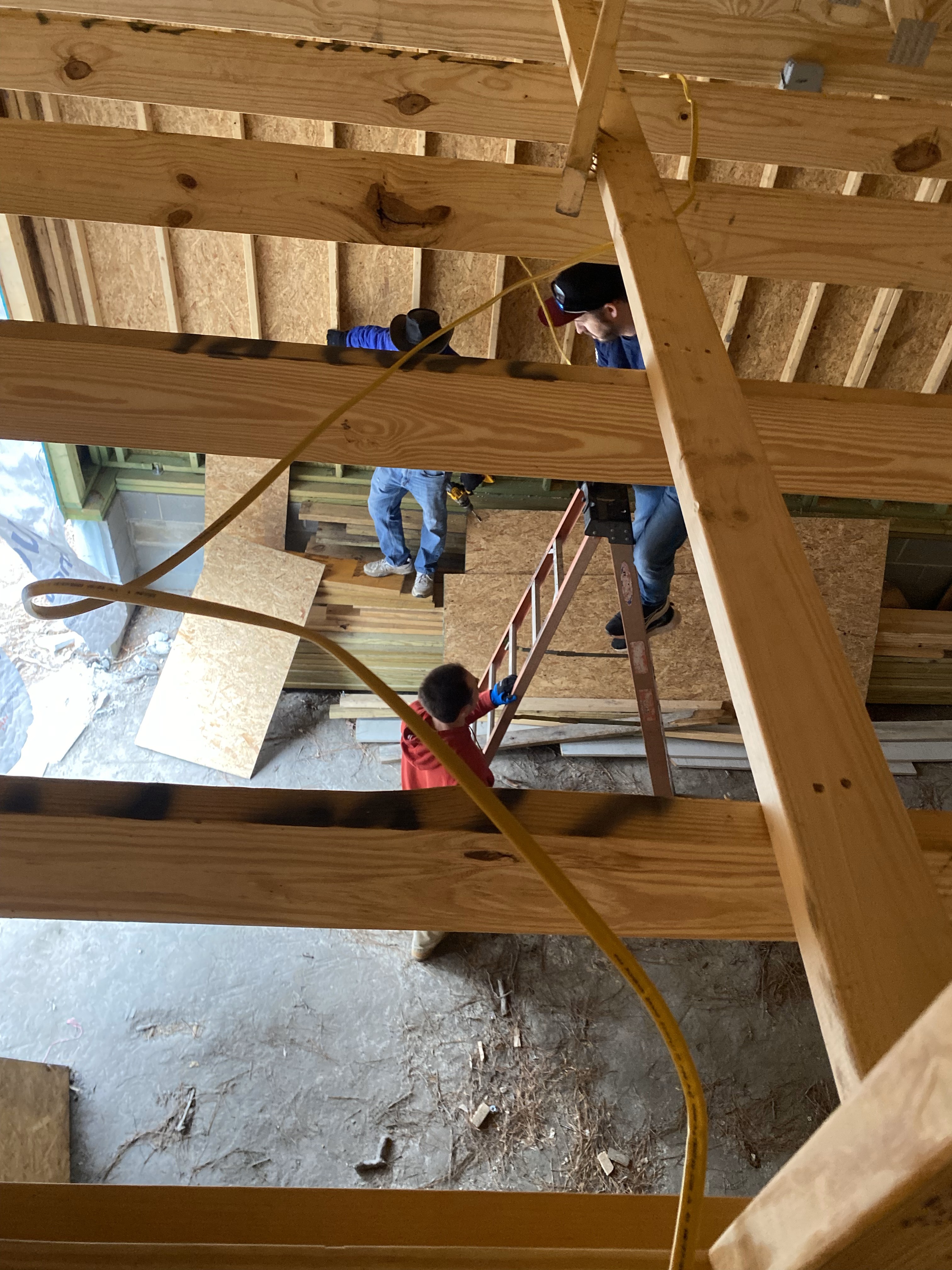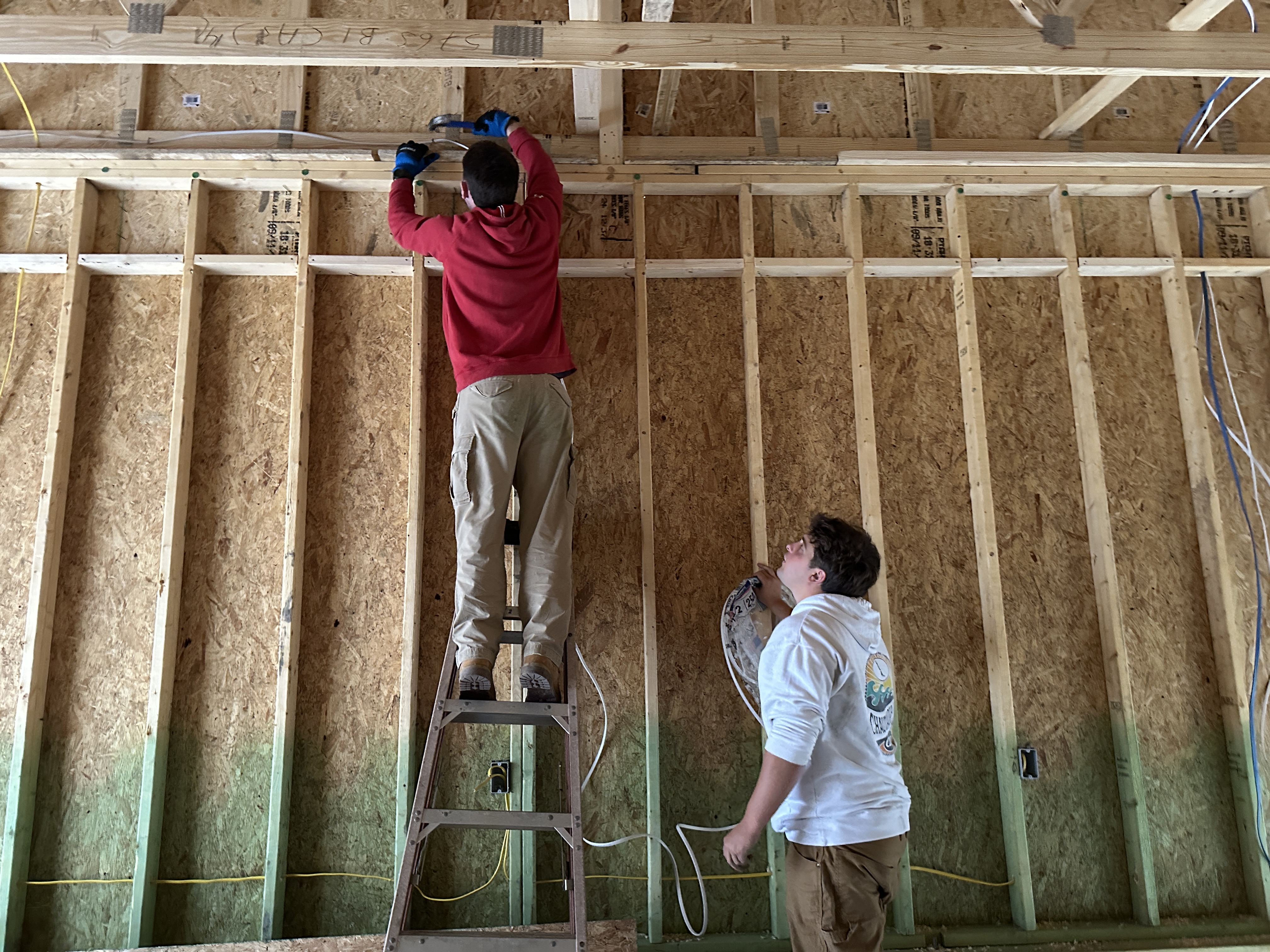 The second team joined a crew of professionals and volunteers running wire at a new home build.