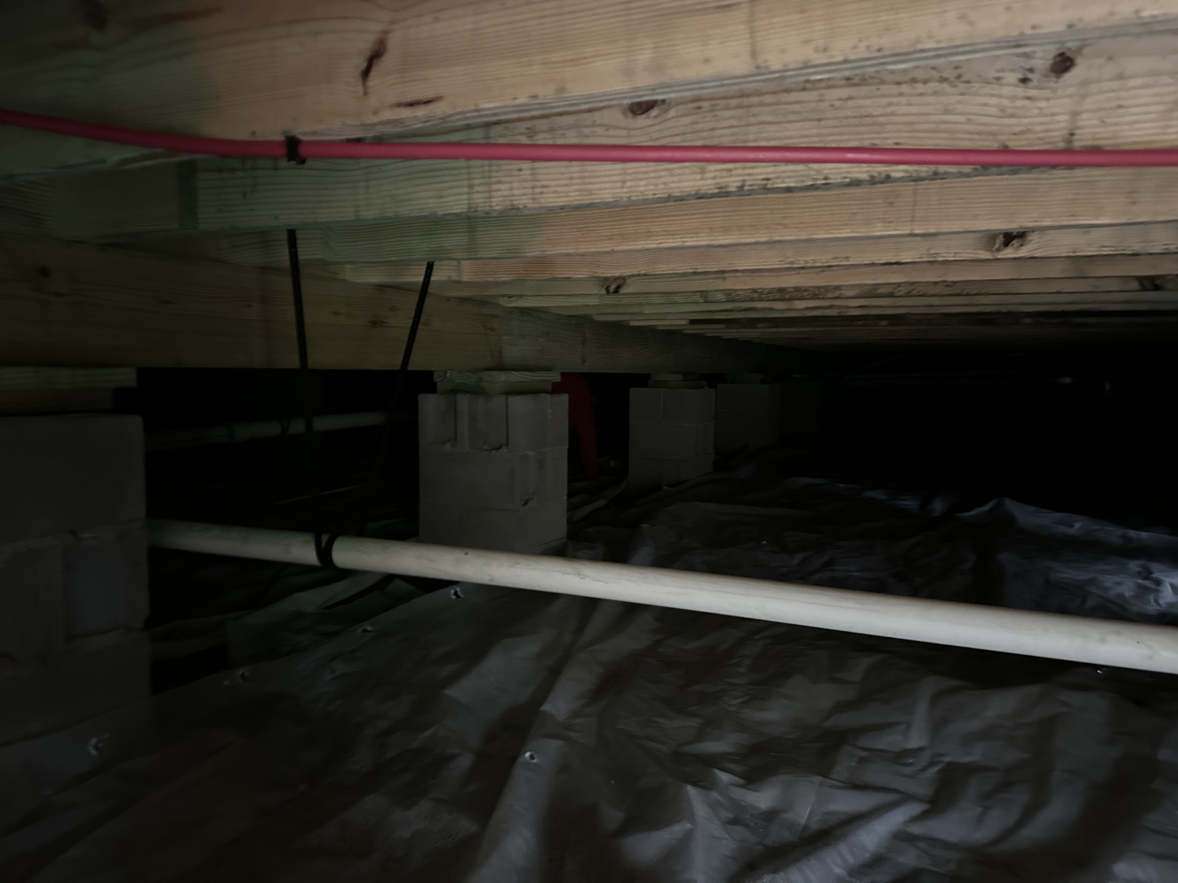 After a few hours lugging wire over 15ft beams and under the floor, the crew finished all that was needed and headed back to the first site to help out some more.