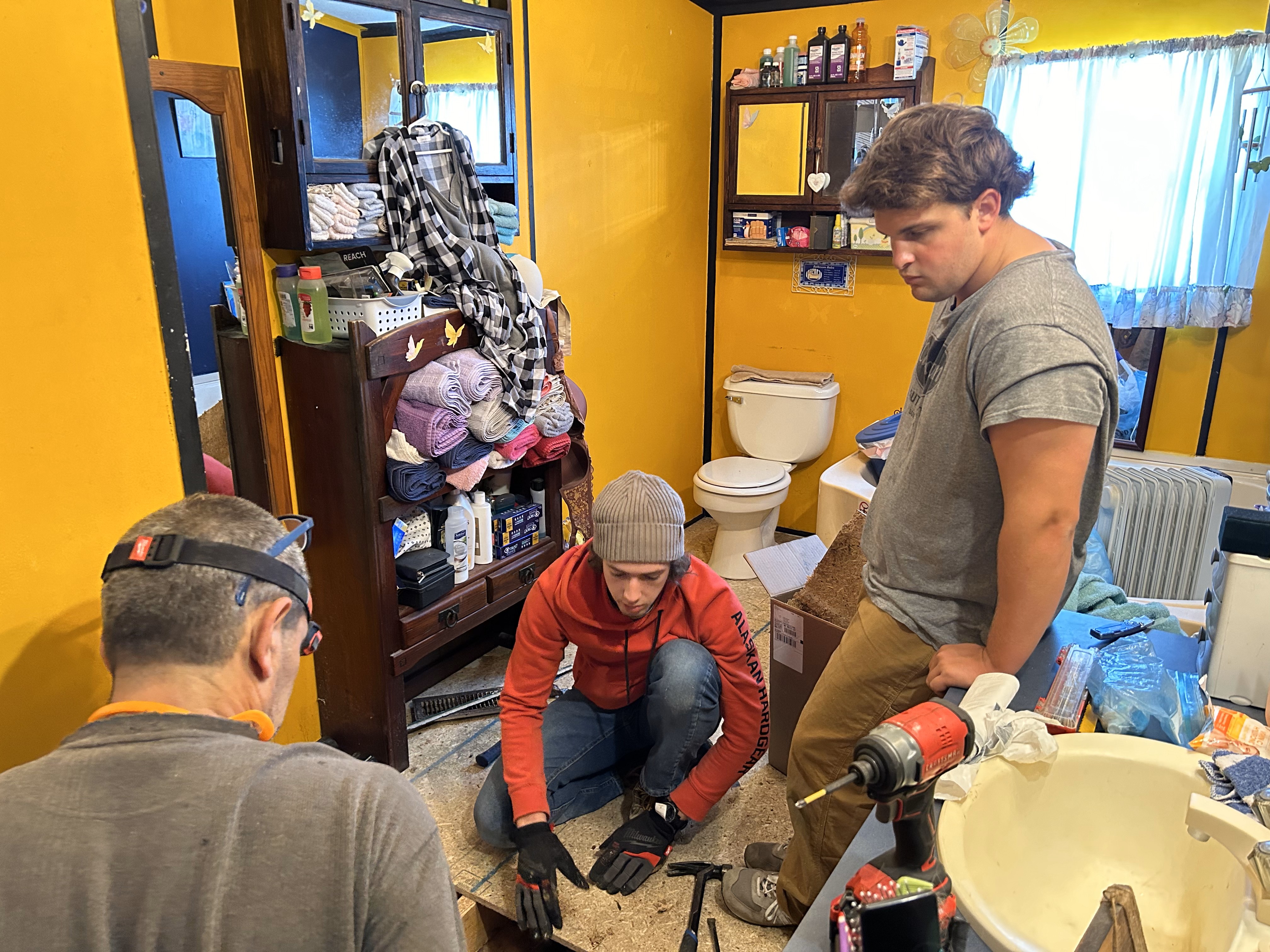 Bobby, Bobby, Jan, and JohnPaul (BBJJP) went to a new home that needed bathroom flooring replaced.